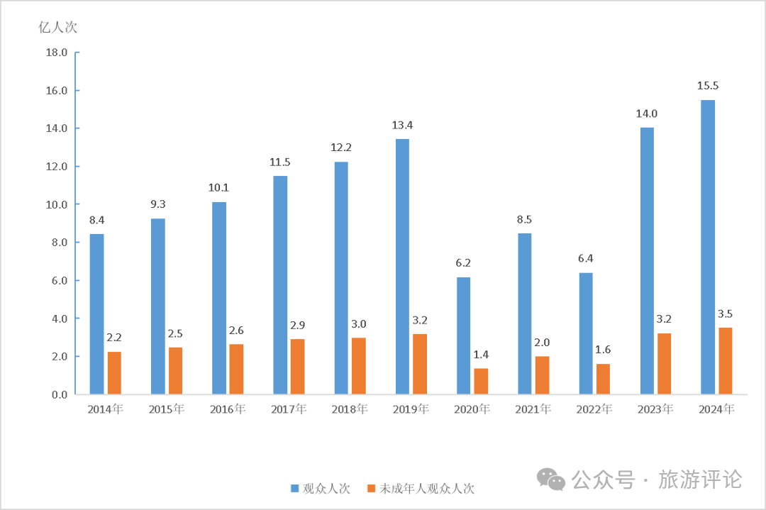 2014—2024年全國文物機構(gòu)接待觀眾人次及未成年人觀眾人次