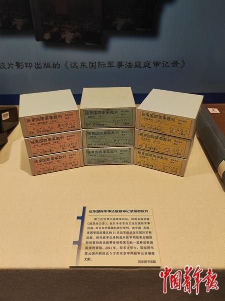 遠東國際軍事法庭庭審記錄縮微膠片。中青報·中青網記者 蔣肖斌/攝