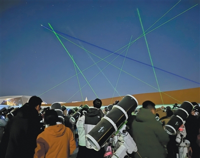 “爸爸,那顆星星好亮!”“是啊,你知道它叫什么嗎?”來自廣東的游客黃慶秋帶著女兒仰臥在觀星椅上,參照著手機里的觀星軟件,為女兒進行講解。“我們是專程來這里看星星的。聽說凌晨還能看到銀河,已經(jīng)把鬧鐘設置好了。”黃慶秋說。