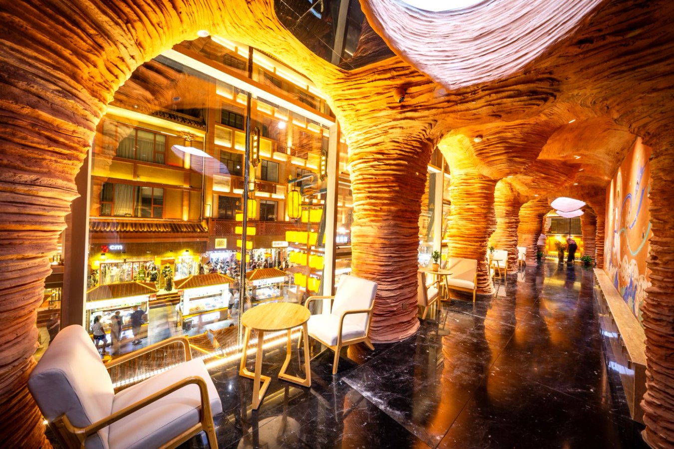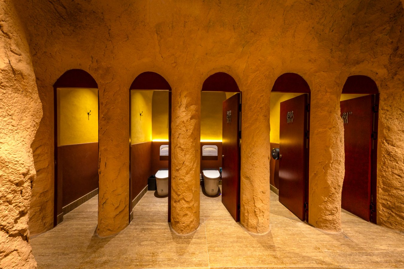 據(jù)了解,該項(xiàng)目對(duì)敦煌夜市“八景樓”進(jìn)行功能再造,融合敦煌文化基因:一層以“莫高至善”為主題,二層則呈現(xiàn)“雅丹秘境”,營(yíng)造雄渾奇幻的空間意境。步入其中,便能感受到敦煌文化與九牧衛(wèi)浴產(chǎn)品的完美交融,一位來(lái)自北京的游客表示:“這和我印象中的公廁完全不一樣,升級(jí)后的超白玻幕墻與毗鄰的沙州樓形成震撼的 ‘古今對(duì)話’,夜幕降臨時(shí),燈光與幕墻交相輝映,宛如一座小型藝術(shù)館。”