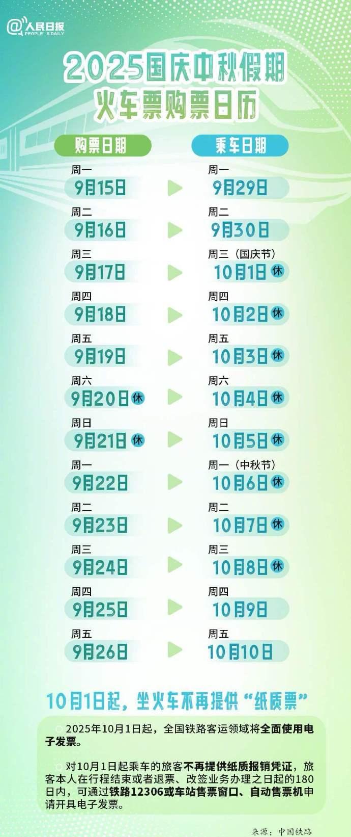 小貼士:根據(jù)鐵路部門規(guī)定,對10月1日起乘車的旅客,坐火車不再提供紙質報銷憑證。(來源:人民日報)