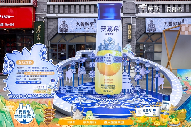2025年9月23日至28日,隨著安慕希地域美食節(jié)第四站在貴州遵義1935文化街區(qū)圓滿落幕,京東旅行與安慕希攜手打造的"四城美味與文化盛宴"迎來收官。本次活動以新上市的安慕希貴州刺梨酸奶為核心,聯(lián)合遵義旅游集團,深度融合苗族蠟染、竹編非遺技藝,通過地域美食定制、文化體驗與品牌發(fā)布等多維創(chuàng)新,為現(xiàn)代消費者呈現(xiàn)一場味覺與文化的深度對話,標志著文旅跨界營銷進入"地域深耕+文化再生"的新階段。