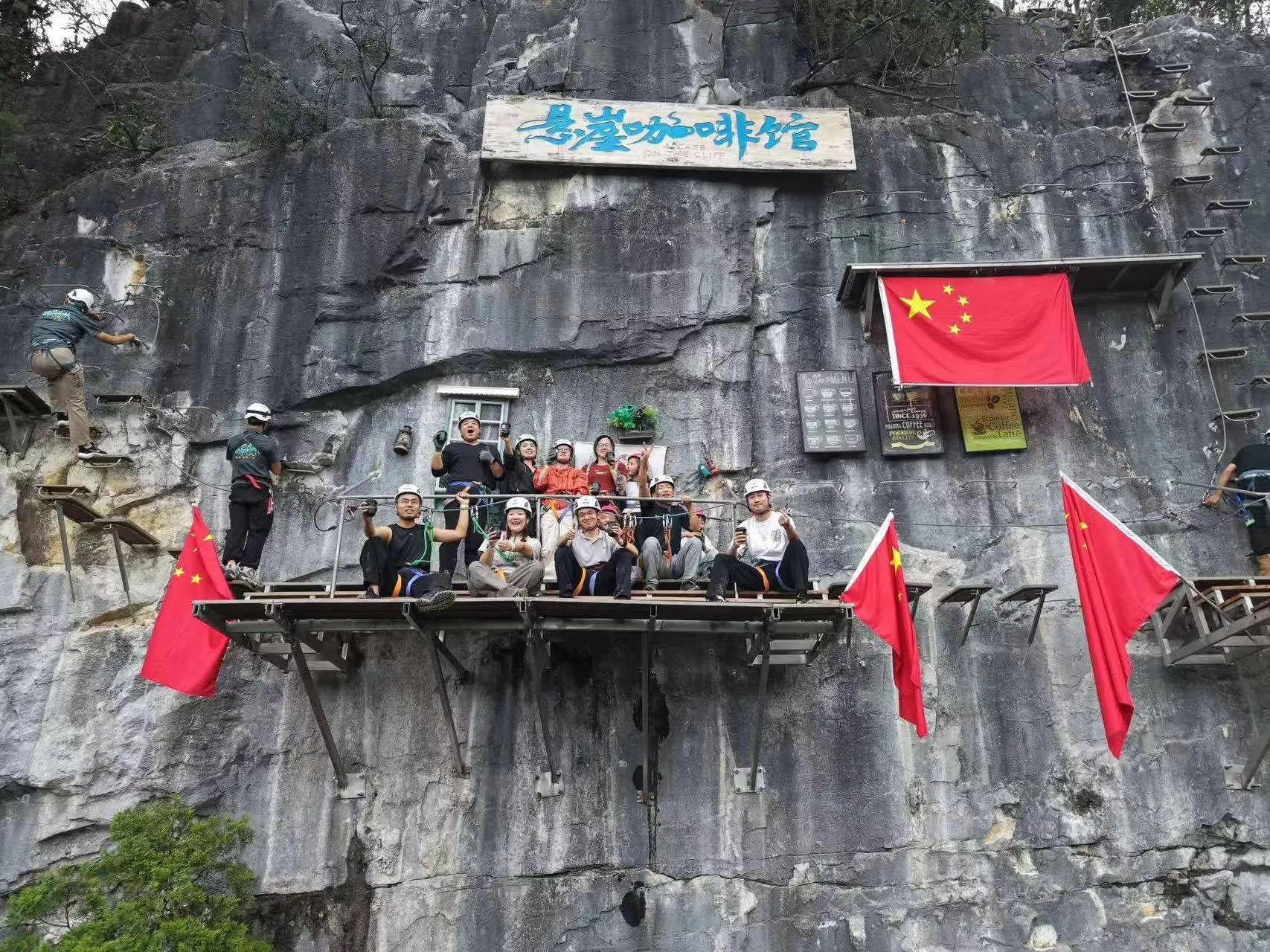 游客打卡懸崖咖啡館(荔波縣融媒體中心供圖)