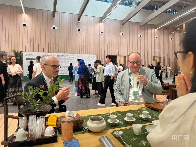 頒獎儀式現(xiàn)場,外賓品茗安吉白茶(央廣網(wǎng)記者 項楠 攝)