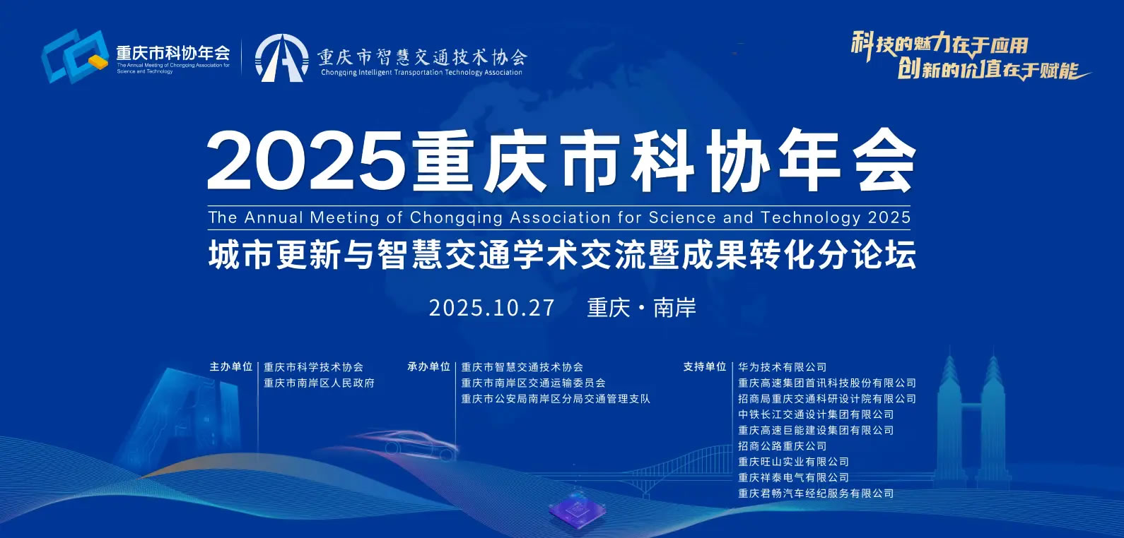 10月27日,2025重慶市科協(xié)年會(huì)即將開(kāi)幕。作為年會(huì)重要組成部分,“城市更新與智慧交通學(xué)術(shù)交流暨成果轉(zhuǎn)化分論壇”將于當(dāng)天下午舉行,旨在匯聚政、產(chǎn)、學(xué)、研各方力量,共同探討人工智能等前沿科技如何賦能重慶城市交通治理與更新。