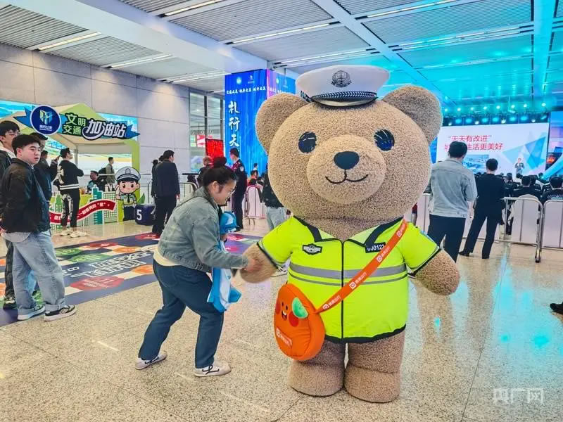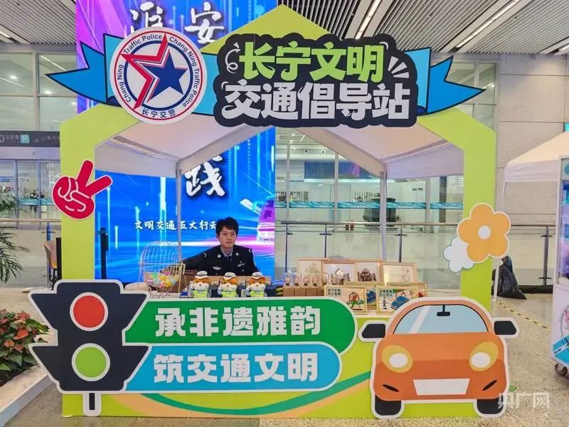 啟動儀式后,現(xiàn)場設(shè)置的多個互動體驗區(qū)吸引了大量市民駐足參與。文明交通游戲互動區(qū)融合了快樂大轉(zhuǎn)盤、抓娃娃機、交通標識猜謎等趣味項目;交通科技體驗區(qū)則展示了包括高科技警用設(shè)備、警用無人機、安全駕駛AR模擬、酒駕測試眼鏡在內(nèi)的先進裝備,讓市民直觀感受科技賦能交通管理的成效。文明實踐快閃店集中呈現(xiàn)了虹橋機場、虹橋火車站等窗口單位在文明實踐中的創(chuàng)新成果。