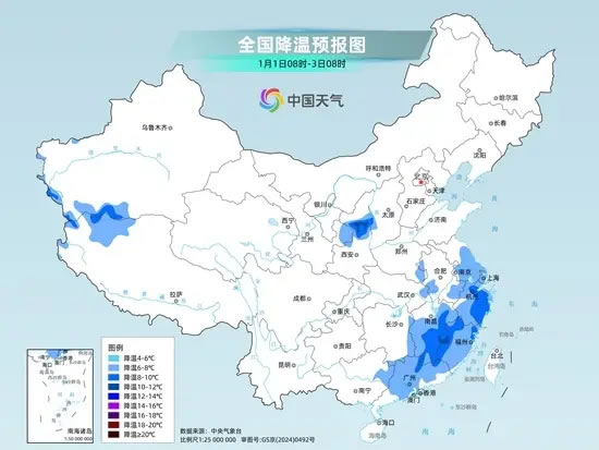 中央氣象臺1月1日06時繼續(xù)發(fā)布寒潮藍色預警: 受寒潮影響,預計,1月1日08時至1月3日08時,陜西中北部、山西西南部、江淮中東部、江南中東部、華南北部和東部等地日平均或...