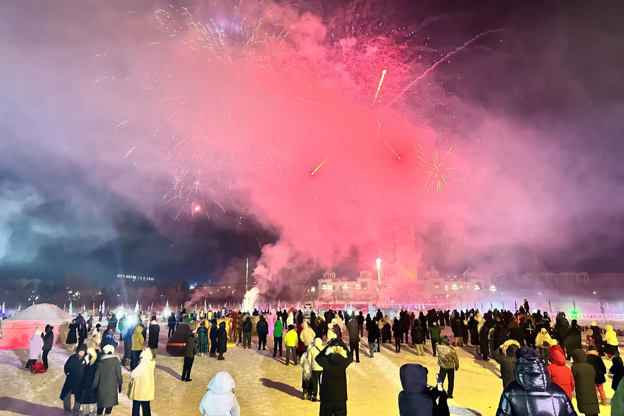 當(dāng)晚,無人機(jī)表演和煙花秀成為開園活動(dòng)的一大亮點(diǎn)。無人機(jī)在夜空中變換造型,與冰雪景觀交相呼應(yīng),隨后綻放的煙花點(diǎn)亮夜空,將現(xiàn)場(chǎng)氛圍推向高潮,吸引游客駐足觀看、拍照留念。