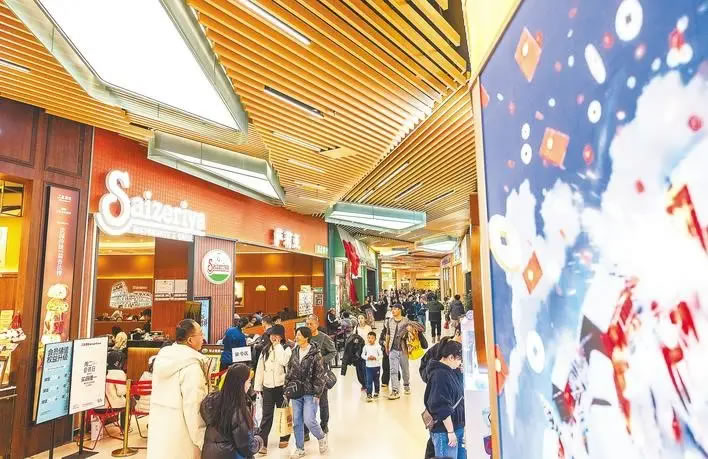 2月21日,武漢永旺夢樂城經開店內,購物休閑的消費者絡繹不絕。 (湖北日報全媒記者 薛婷 攝)