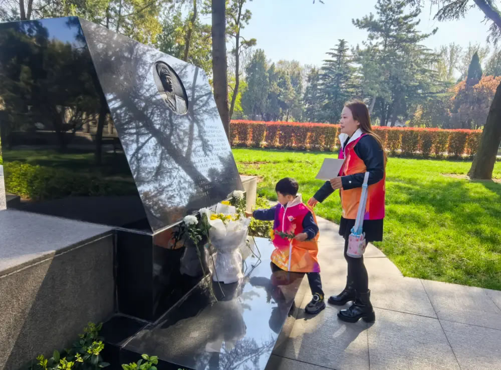 4月4日,當王俊皓手持白菊走到華東革命烈士陵園里的漢斯·希伯墓前時,他已經(jīng)完成紅色知識科普、背詩、認旗幟等關(guān)卡,闖過了“尋英魂傳薪火 拼紅韻寄清明”活動的前三關(guān)后,將鮮花輕輕放到了革命烈士的墓前。