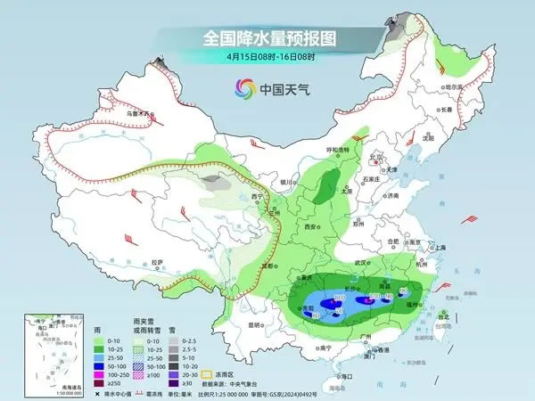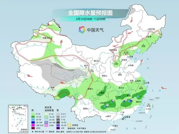 預(yù)計(jì)未來三天,南方降雨較過去幾天有所減弱,但范圍仍廣泛,同時(shí)青藏高原多地仍有明顯降雪。中央氣象臺(tái)預(yù)計(jì),今天,新疆阿勒泰北部和南疆盆地、西藏北部、青海東部和南部、甘肅河西和南部、川西高原北部以及內(nèi)蒙古中部、黑龍江北部等地部分地區(qū)有小雪或雨夾雪,其中,新疆阿勒泰北部、西藏北部、青海西南部等地部分地區(qū)有中到大雪;西藏東南部、四川盆地西部、西南地區(qū)東北部、江南大部、湖北南部、廣西北部等地部分地區(qū)有中到大雨,其中,湖南東南部、江西東北部等地局地有暴雨。