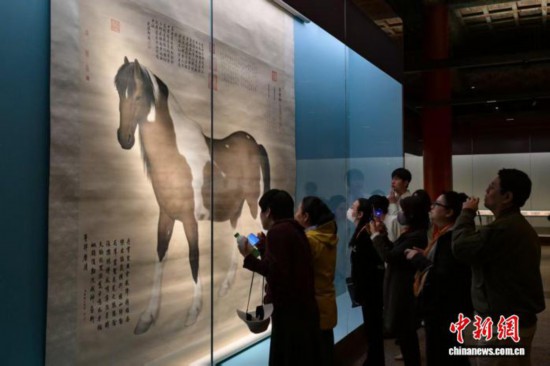 “神駿:故宮書(shū)畫(huà)藝術(shù)中的馬世界”展覽4月21日在故宮博物院文華殿開(kāi)幕,圖為展覽現(xiàn)場(chǎng)。中新社記者 田雨昊 攝