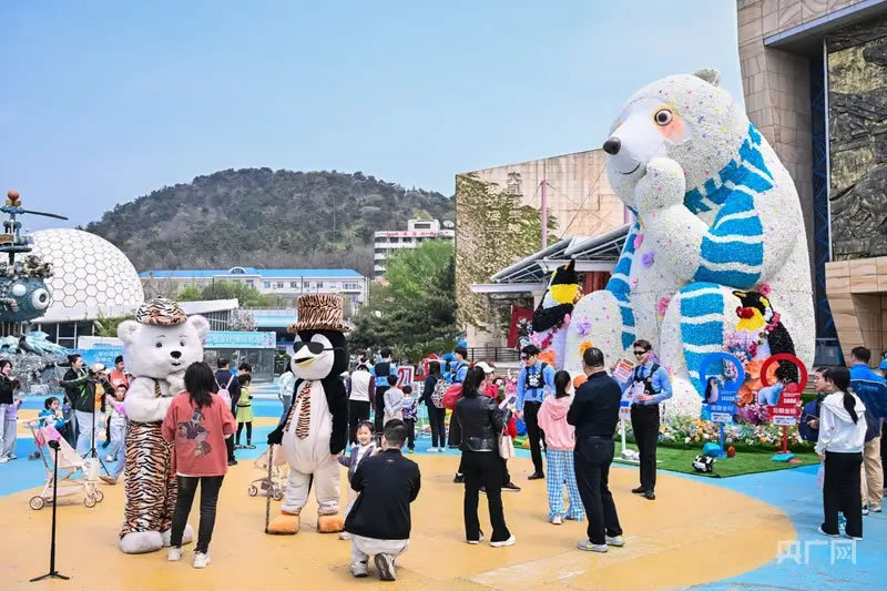 央廣網(wǎng)大連4月28日消息(記者易博聞)五一假期臨近,大連老虎灘海洋公園于近日啟動“2026五一山;ㄑ”主題活動。今年恰逢園內(nèi)極地海洋動物館開館24周年,一座高達(dá)8.8米的“繁花巨熊 熊霸霸”主題雕塑作為東北地區(qū)首創(chuàng)的全新山海地標(biāo)正式亮相,吸引市民游客前來感受春日海洋文化氛圍。