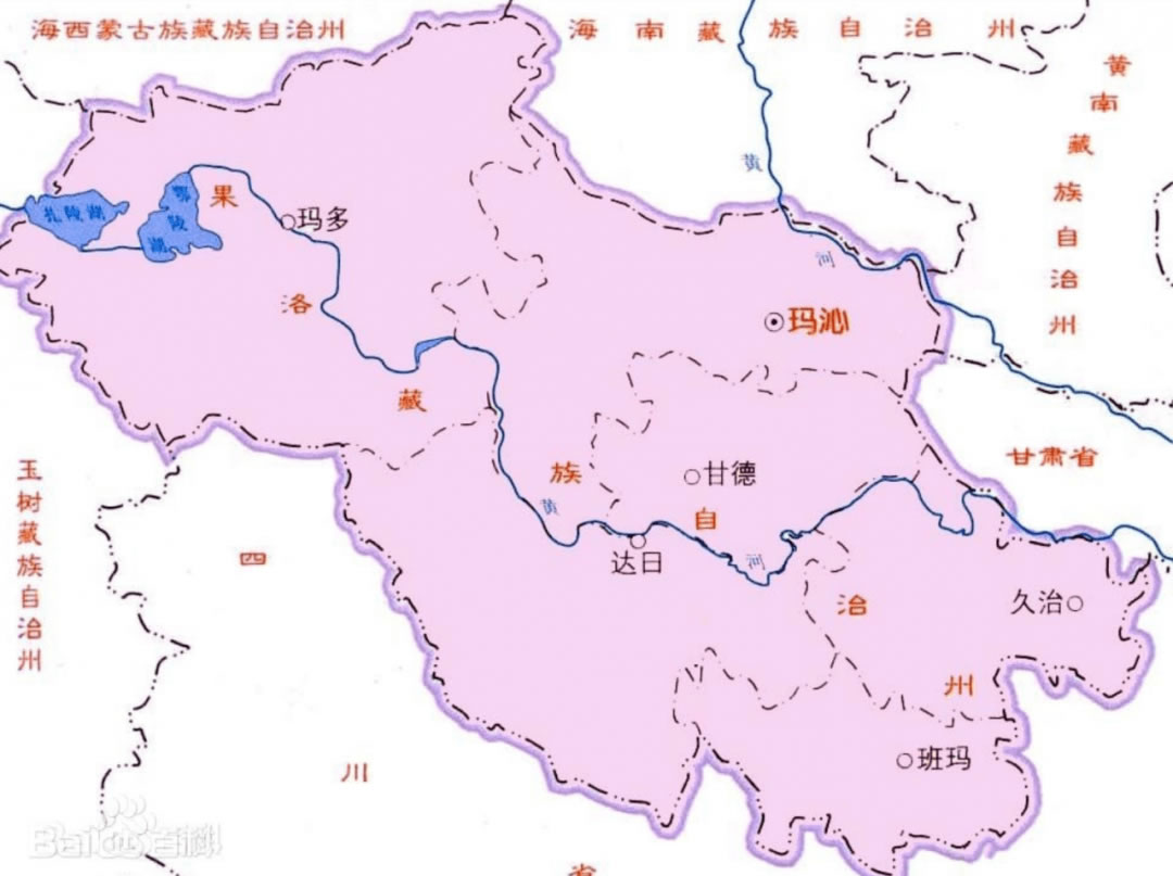 瑪沁縣 面積13400平方千米,人口48445,政府駐大武鎮(zhèn),下轄2個(gè)鎮(zhèn)、6個(gè)鄉(xiāng)