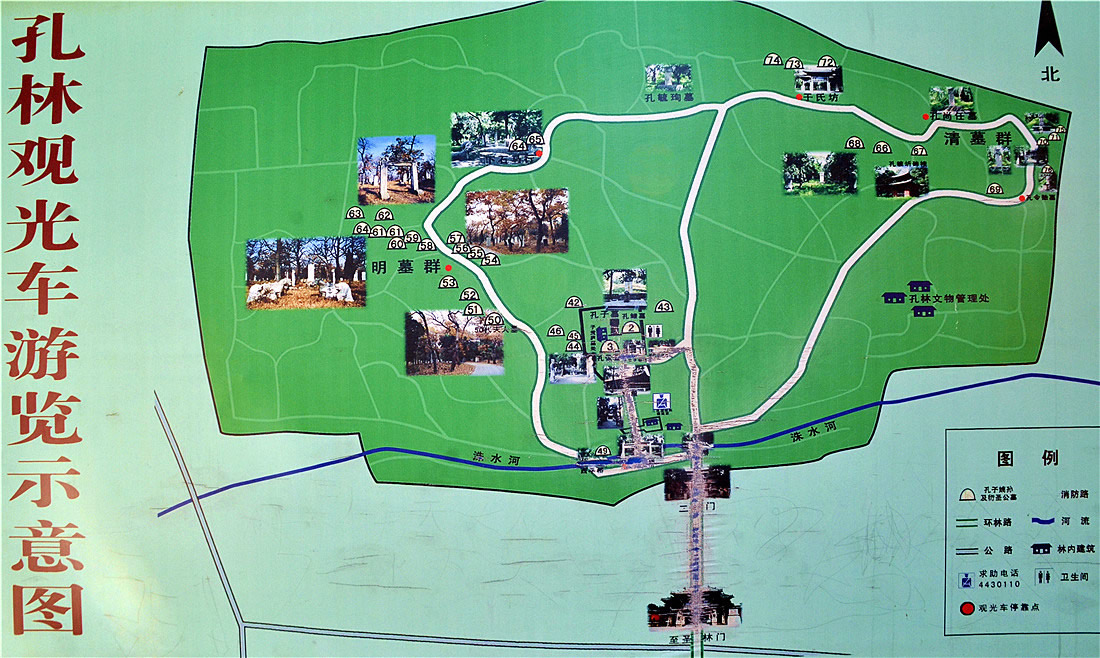 一間,在 東南又造齋宿一間,以吳初等若干戶供孔墓灑掃,當(dāng)時(shí)的孔林“地不過一 頃”。到南北朝高齊時(shí),才植樹600株。宋代宣和年間,又在孔子墓前修造石儀。進(jìn)入元文宗至順二年(公元1331年),孔思凱主修了林墻,構(gòu)筑了林門。明洪武十年(公元1684年)將孔林?jǐn)U為3000畝的規(guī)模。雍正八年(公元1730年),大修孔林,耗帑銀25300兩重修了各種門坊,并派專官守衛(wèi)。據(jù)統(tǒng)計(jì),自漢以來,歷代對(duì)孔林重修、增修過13次,增植樹株5次,擴(kuò)充林地3次。整個(gè)孔林周圍垣墻長(zhǎng)達(dá)7.25公里,墻高3米多,厚約5米,總面積為2平方公里,比曲阜城要大得多