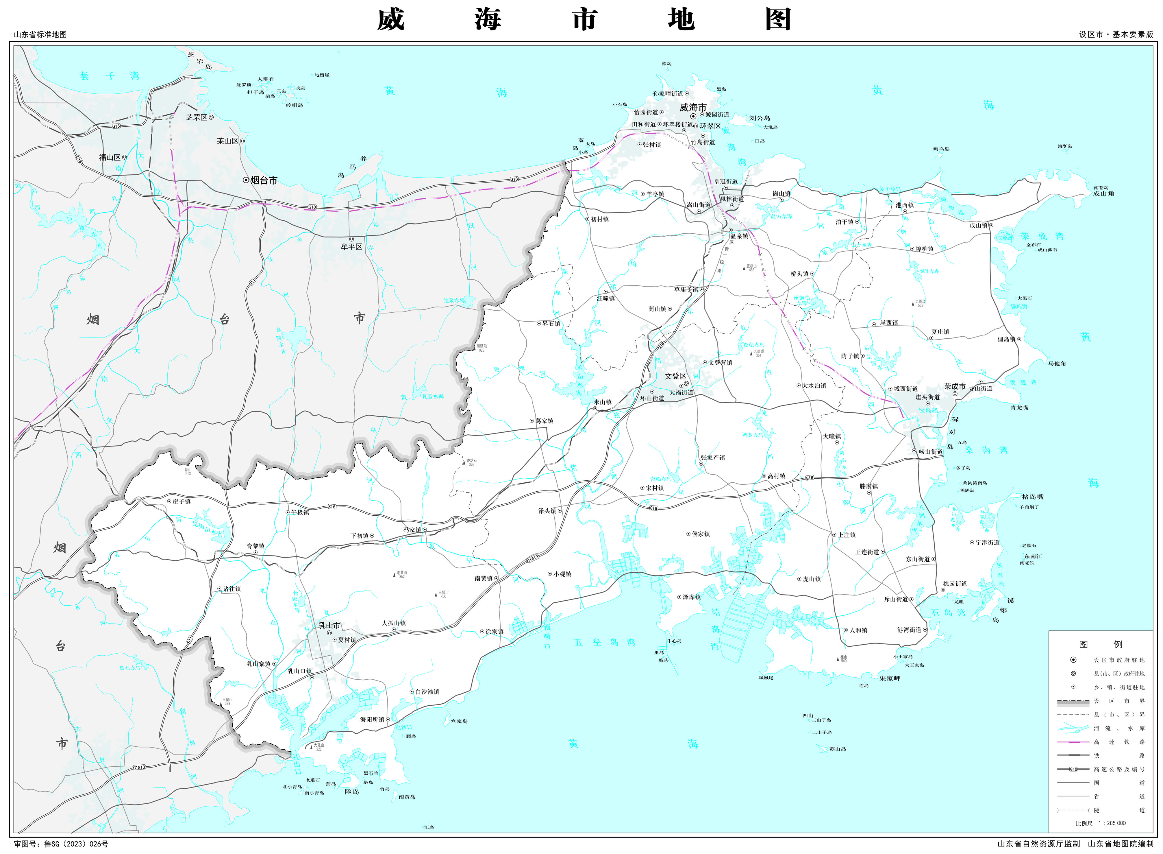 威海市轄2個(gè)市轄區(qū),2個(gè)縣級市: