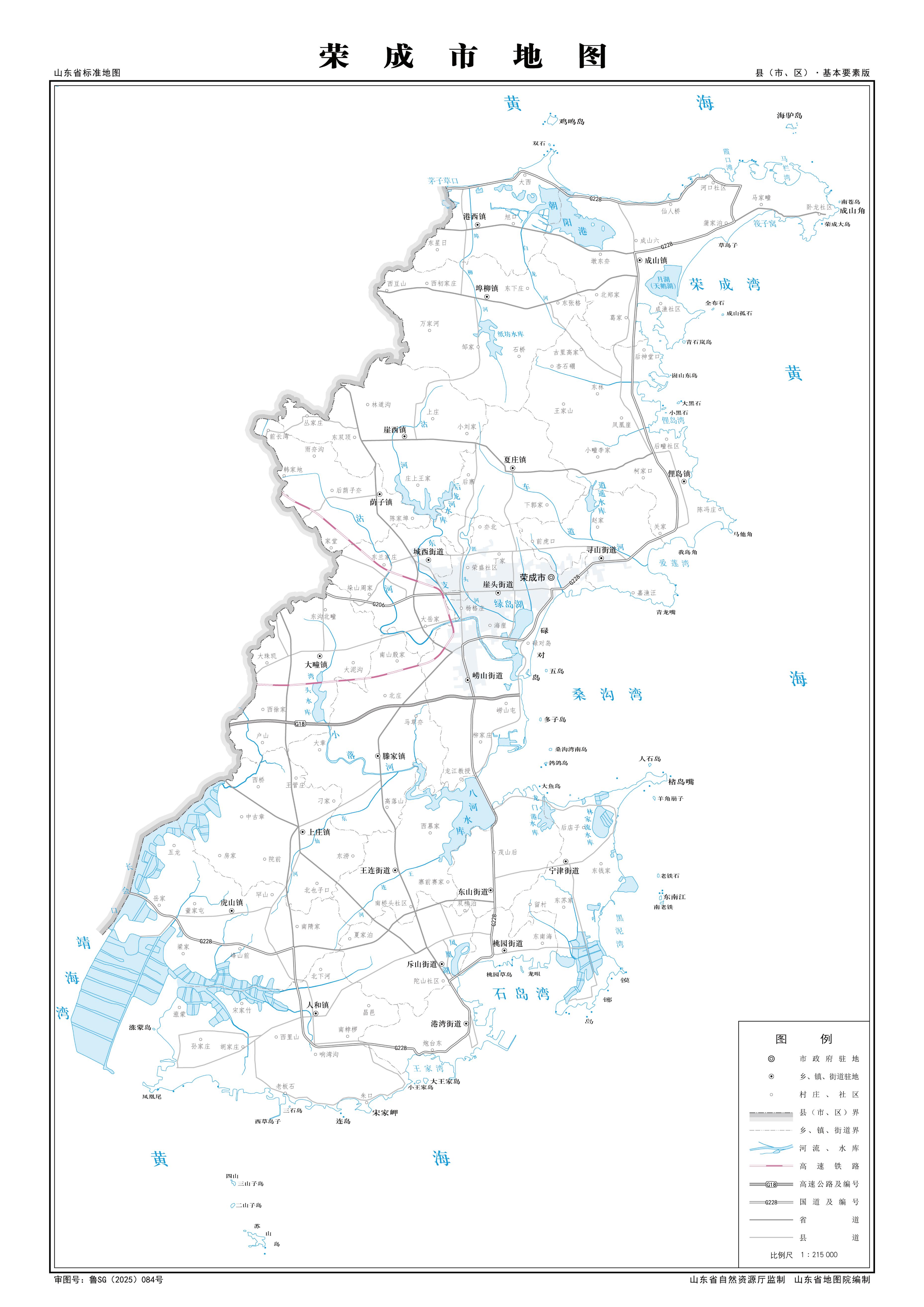榮成市轄10個街道、12個鎮(zhèn):