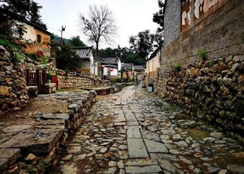 從進(jìn)村的第一道門——禮門開始,便是保留至今的明代始建的古道。山石鋪就的古道中央,嵌有兩溜大塊青石,形似鐵路,村民們形象地稱其為“雙軌”古道!半p軌”不為好看,而有其獨特的用途。早年村里就規(guī)定,走路必須靠右行,兩股道自然也分成了上下行,這與今天的交通規(guī)則不謀而合。古道的盡頭便是連接各家各戶的小徑,為了防滑,斜坡上的道心用的是沙石而不是青石。有趣的是,在村的中央,還有兩座清康熙年間修建的青石拱橋,上下皆可行人走車馬,大雨時,橋下亦可行洪。橋身青石壘砌,不用灰漿,雖有三百余年的歷史,依然堅固如初。有專家說這是現(xiàn)代立交橋的雛形?吹贸鲞@小小的山村從始建之初就經(jīng)過高人指點,充分體現(xiàn)了“天人合一”的人文情懷。