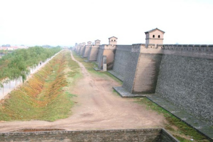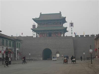 康熙四十三年(1703年)因皇帝西巡路經(jīng)平遙,而筑了四面大城樓,使城池更加壯觀。平遙城墻總周長(zhǎng)6163米,墻高約12米,把面積約2.25平方公里的平遙縣城一隔為兩個(gè)風(fēng)格迥異的世界。