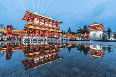大唐芙蓉園,位于陜西省西安市雁塔區(qū)大雁塔東南側(cè),占地面積1000畝,其中水域面積300畝。大唐芙蓉園是在原唐代芙蓉園遺址以北,仿照唐代皇家園林式樣重新建造的,是中國第一個全方位展示盛唐風貌的大型皇家園林式文化主題公園。