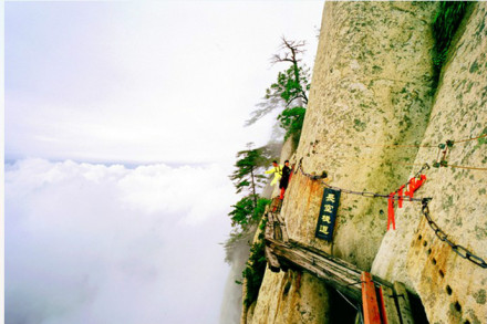 華山的著名景區(qū)多達(dá)210余處,有凌空架設(shè)的長(zhǎng)空棧道,三面臨空的鷂子翻身,以及在峭壁絕崖上鑿出的千尺幢、百尺峽、老君犁溝等,其中華岳仙掌被列為關(guān)中八景之首。