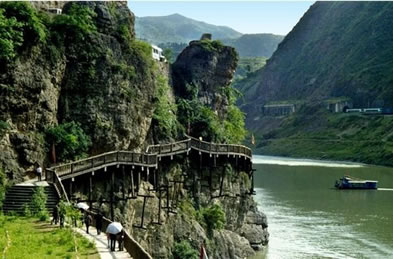 據(jù)說,三國時(shí)期,蜀丞相諸葛亮率軍伐魏,路經(jīng)大劍山,見山勢險(xiǎn)峻,便令軍士鑿山巖,架飛梁,搭棧道,助其六出祁山,北伐曹魏。雖然古棧道早已湮沒在歷史的長河,后來又重新建在山峰之上。
