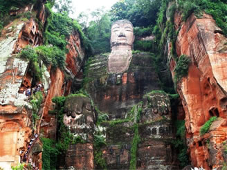 樂(lè)山大佛景區(qū)位于樂(lè)山市郊,岷江、青衣江、大渡河三江匯流處,與樂(lè)山城隔江相望。景區(qū)由凌云山、麻浩巖墓、烏尤山、巨形臥佛等組成。