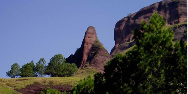 ▲情人堡 洼垮湖灣岸上山脈,其形狀酷似屈膝仰臥我睡美人。摩梭村寨成年兒女,常邀約到山間互表衷情。“哪里去,哪里去,走婚去!情人堡,情人堡,看星星!”——是當?shù)厍嗄曛袕V為流傳的順口溜。
