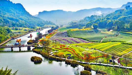 花田酒地旅游景區(qū)依托清溪河下游河畔而建,以展示花田景觀和酒文化為主題,由清溪河道景觀、花田景觀、景觀橋、半山棧道、瀑布景觀、白酒莊園等組成。也有漂流、游船、玻璃棧道、高空蹦極、攀巖、滑草等多項(xiàng)綜合娛樂項(xiàng)目。景區(qū)花卉的花期覆蓋春、夏、秋、冬四個(gè)季節(jié)。