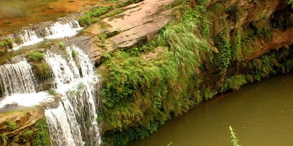 黃金峽:位于丹棱城西24千米張場(chǎng)鎮(zhèn),仁興鄉(xiāng)和王場(chǎng)鄉(xiāng)境內(nèi),峽長(zhǎng)7.5千米,兩岸壁立,對(duì)峙如門(mén),其崖筆立陡削直插云天,形成雄偉壯觀的"一線天"。峽內(nèi)主要景點(diǎn)有:龍?zhí)讹w瀑、金峽湖、雙猩向龍?zhí)丁⑽Q滤、一線天、虹渡、望魚(yú)石、金船等。當(dāng)?shù)厝搜裕?quot;金峽有三奇,曉雨不濕衣,九月瑞雪飛,夜半聞琴聲","神隆博濟(jì)廟,喊聲一出雨就到"。"黃金天子一夜鑿?fù)S金堰"等傳說(shuō)故事更是神奇美妙。