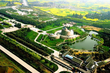 三星堆博物館(Sanxingdui Museum)于1992年8月奠基,1997年10月建成開放,位于全國重點(diǎn)文物保護(hù)單位三星堆遺址東北角,地處廣漢城西鴨子河畔,南距成都40公里,北距德陽26公里,是中國一座現(xiàn)代化的專題性遺址博物館。三星堆博物館有兩個(gè)展館,其展示面積近12000平方米。