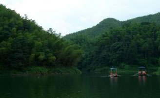 湖中有兩座不同的原形小島。湖水碧綠清澈,四周翠竹掩映,綠草如茵,附近有梅坪、古佛洞、涼風(fēng)洞、照妖鏡、七疊石等古跡。當(dāng)太陽起落時,滿湖金色,萬道霞光,絢麗多彩。湖上可蕩舟劃筏,湖邊亭閣,也可品茗小酌。夏秋之夜,山巒沉郁而秀朗,清風(fēng)徐來,漣漪翩翩,湖邊納涼閑話,別有情趣。