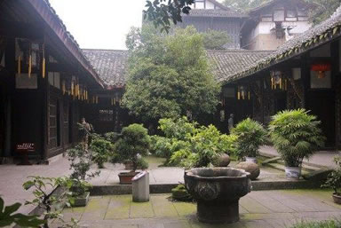 上客廳右方的沁園內(nèi)建有一座學(xué)館,是黃氏家族子弟讀書(shū)的地方。館前有一株高大的黃桷蘭,花開(kāi)時(shí)節(jié),滿(mǎn)園飄香。學(xué)館環(huán)境清清凈凈,芳菲沁人。