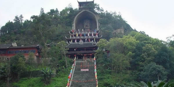 榮縣大佛:榮縣城東0.5公里有全國(guó)第二大佛——榮縣大佛,大佛寺內(nèi)半山之上,有一尊巍峨的石刻如來坐佛佛像,世稱榮縣大佛。大佛依山崖鑿成,通高36.67米,頭長(zhǎng)8.76米,肩寬12.67米,膝高12米,腳寬3.5米,其頭部長(zhǎng)8.76米,肩寬12.67米,腳寬3.5米。是一尊如來佛像,僅次于樂山彌勒大佛,為中國(guó)第二石刻大佛!s縣大佛開鑿于北宋元豐八年(公元1085年),完工于公元1092年,歷時(shí)八年始完工。大佛的頭頂上方有一道石條卷拱護(hù)罩,上刻“大開覺路”四字;崖頂上還有磚閣一座,遠(yuǎn)看像在戴在大佛頭頂上的寶冠。 大佛鑿刻完工后,即修有殿宇保護(hù),根據(jù)《古今圖書集成》記載,時(shí)有“架殿十層,高四十七丈,闊十五丈”、“舊時(shí)寺門、抵今溪岸”。可見當(dāng)時(shí)的恢宏氣勢(shì),其后幾毀幾修,現(xiàn)存的殿宇為清代嘉慶、道光年間所建。1988年重建的大佛護(hù)身樓,是仿木仿古重檐歇山式建筑,既保護(hù)了大佛,又具游覽價(jià)值,逐層登樓近瞻佛容慈顏,從上到下盡觀大佛偉岸雄姿,鳥瞰榮城風(fēng)貌,眺望遠(yuǎn)山近巒。
