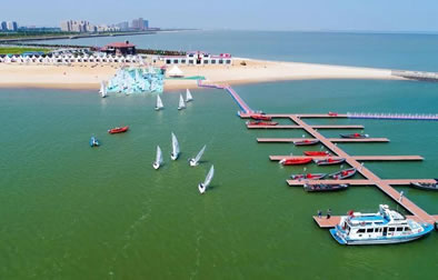 東疆港人工沙灘(東疆灣金沙灘)—天津?yàn)I海新區(qū)首個(gè)人工海灘已經(jīng)建成,藍(lán)色的海水,金色的沙灘,或坐在松軟沙灘上吹海風(fēng),或光著腳丫在鵝卵石帶上散步,撿貝殼、吃燒烤、玩沙灘排球……您用不著走出天津,就能享受“碧海金沙”帶來(lái)的樂(lè)趣。東疆港人工沙灘所處的位置是天津海岸線最靠近外海,也是水質(zhì)最好的地方。東疆港人工沙灘的“金沙”平均厚度達(dá)1.2米,從岸邊呈緩坡?tīng)钜恢毖由熘梁_。人工沙灘所用的“金沙”全部從福建運(yùn)來(lái),用量近20萬(wàn)噸。沙灘的緩坡設(shè)計(jì)充分考慮到潮水漲落時(shí)的水流情況,可防止海水退潮時(shí)將“金沙”帶走。為保證游人安全,在公共游樂(lè)區(qū)沙灘的近海端鋪設(shè)了一條寬約58米的鵝卵石帶,所用鵝卵石將從秦皇島運(yùn)來(lái)。此外,天津港還在附近海域修建防波堤,以保持海灘的潔凈,防止海上漂浮物進(jìn)入人工海灘。