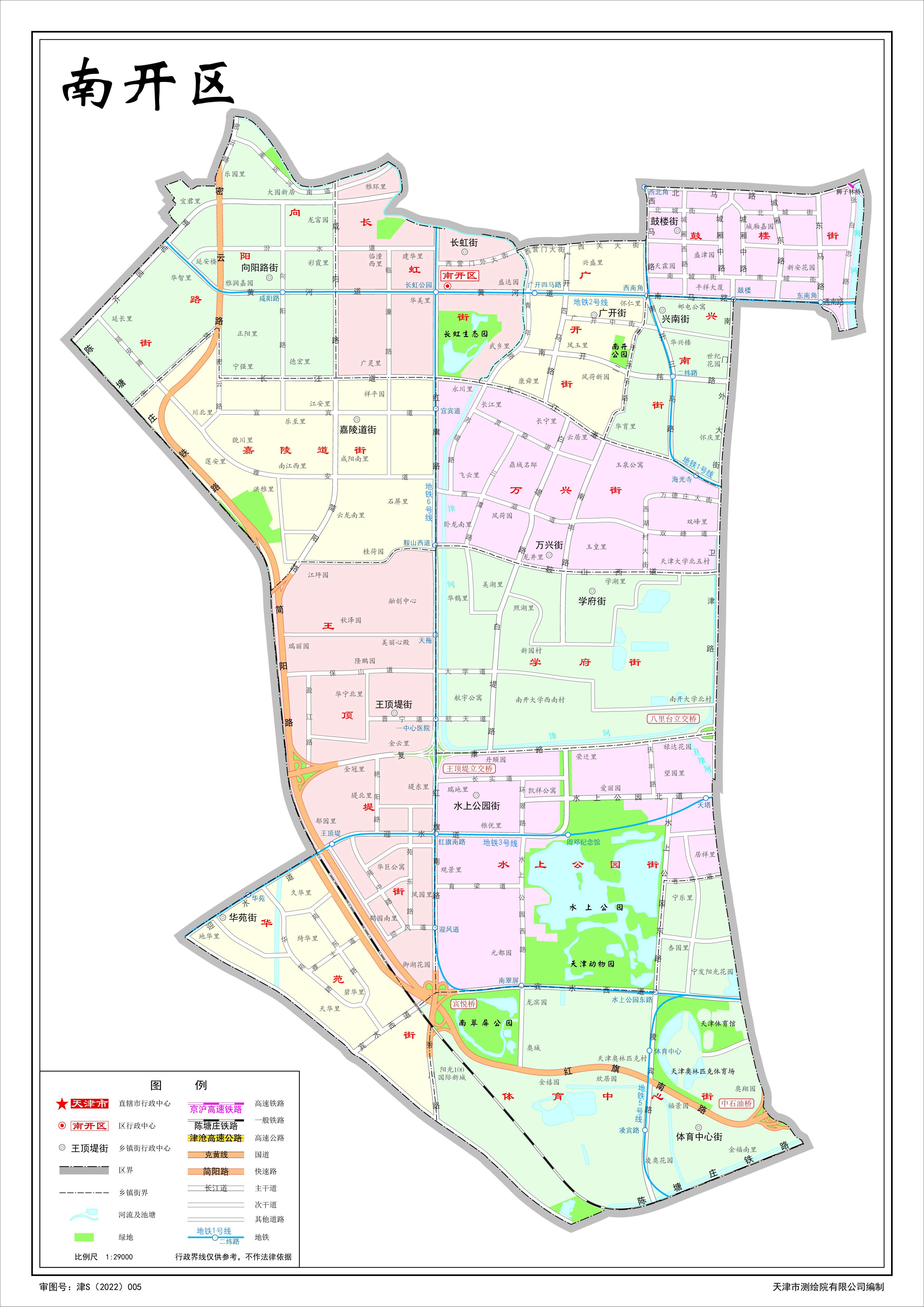 南開區(qū)轄12個街道:長虹街道、鼓樓街道、興南街道、廣開街道、萬興街道、學(xué)府街道、向陽路街道、嘉陵道街道、王頂?shù)探值馈⑺瞎珗@街道、體育中心街道、華苑街道