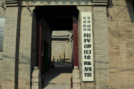 平津戰(zhàn)役天津前線指揮部舊址陳列館位于西青區(qū)楊柳青鎮(zhèn)藥王廟東大街4號,原為一所四合院式民宅,總面積為280平方米。1948年12月至1949年1月解放天津戰(zhàn)役時,中國人民解放軍平津戰(zhàn)役天津前線指揮部曾設在這里。1949年1月14日上午10時,劉亞樓司令員就是在這里發(fā)布了總攻命令,經(jīng)過29個小時的激戰(zhàn),全殲守敵13萬余人。1月15日,天津獲得解放。1962年,河北省將該處定為省級文物保護單位;1982年,天津市政府重新公布為市級文物保護單位,并于1983年建立平津戰(zhàn)役天津前線指揮部舊址陳列館,當年12月對外開放。