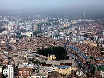 清朝自1760年在喀什噶爾設(shè)參贊大臣之后,作為天山以南的政治、經(jīng)濟(jì)、文化和交通中心,喀什噶爾城人口激增,舊城區(qū)居住不下,開(kāi)始向今解放路以西拓展。1762年筑徠寧城,與舊城只隔不足1公里。到1839年,徠寧城與舊城之間的地帶已全建為民居,清朝駐喀什噶爾阿奇木伯克郡王祖赫爾丁(即史書(shū)中所稱(chēng)“阿肯木伯克早敦”)主持了擴(kuò)城工程,將城西墻移至今尤木拉克協(xié)海爾路,與原徠寧城相連,在今老郵電局處新辟南門(mén),稱(chēng)“庫(kù)木代爾瓦扎”(沙門(mén)),南關(guān)一帶成為繁華的手工業(yè)區(qū),形成了以艾提尕大清真寺為中心的一座新城。