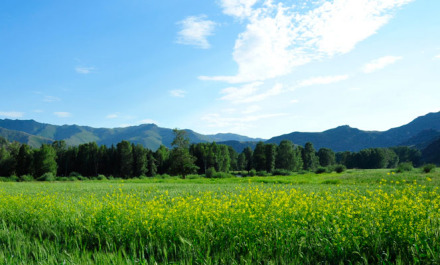 百花草場位于新疆富蘊(yùn)縣可可托海風(fēng)景區(qū)額爾齊斯大峽谷,清澈的額河水從它的西側(cè)流過。有滿天星、野油菜花、映山紅、野菊花、刺薔薇等花草。