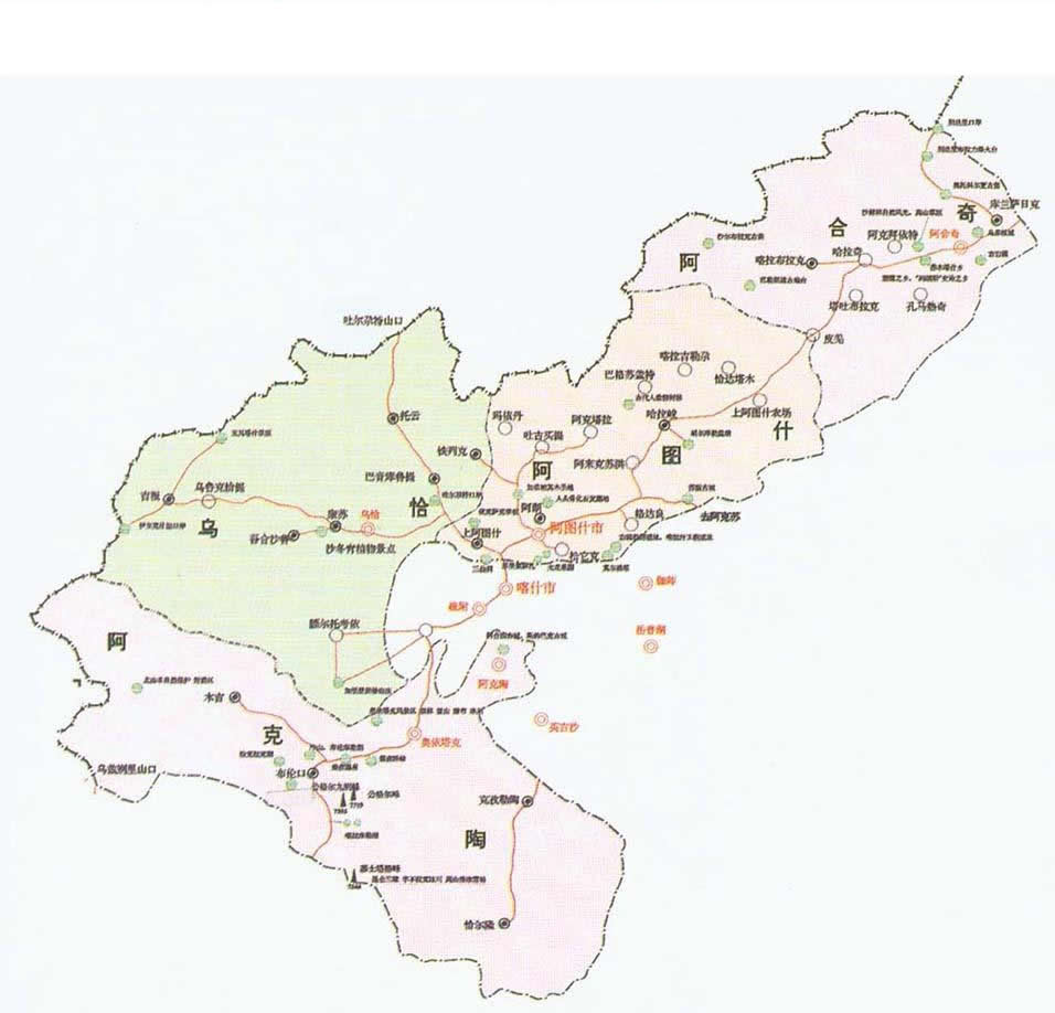 阿圖什市 面積15500平方千米,人口29.09萬(wàn),政府駐阿圖什市帕米爾路東3院,下轄3個(gè)街道、3個(gè)鎮(zhèn)、4個(gè)鄉(xiāng)