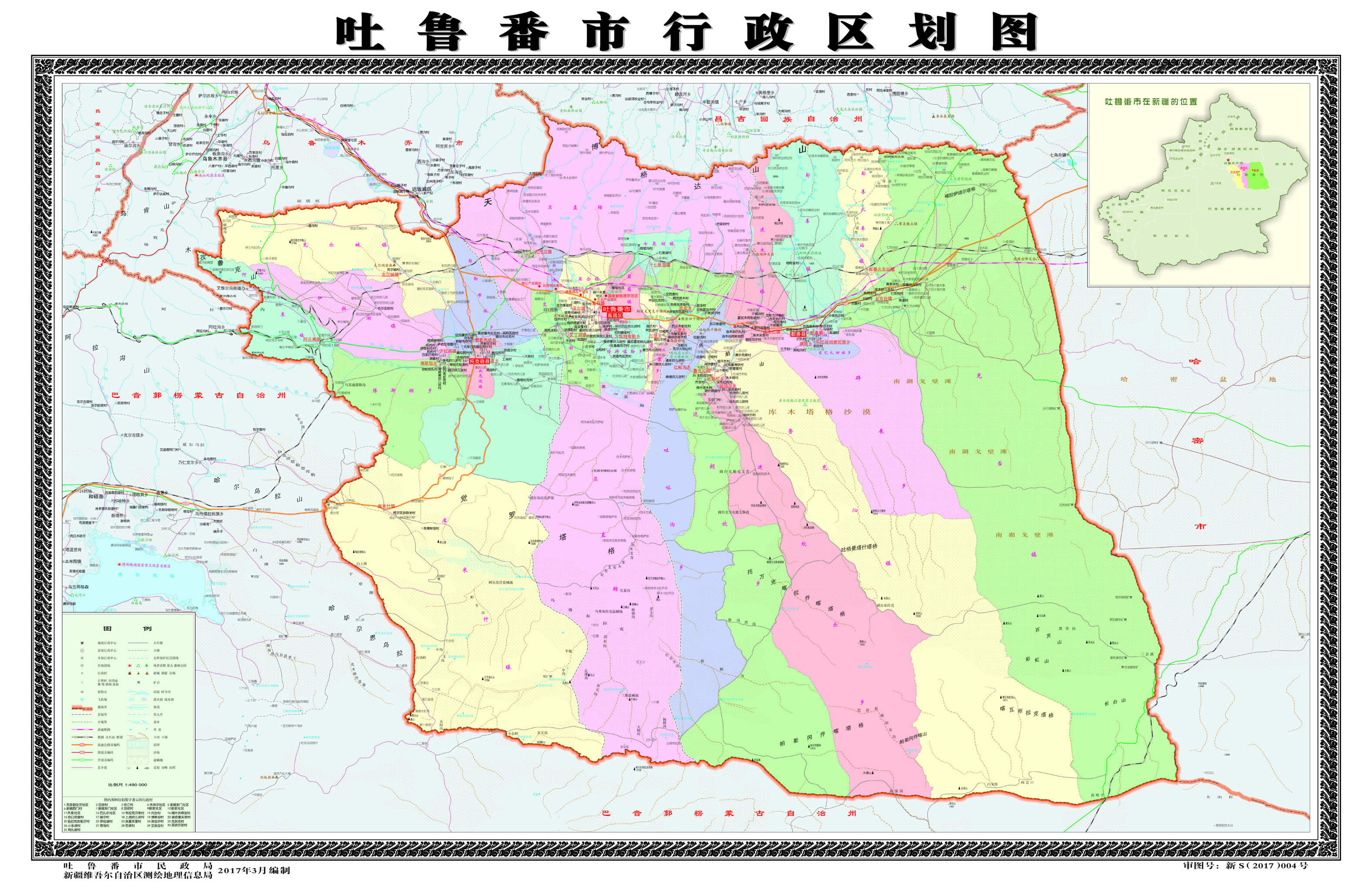 2015年4月,國務(wù)院批復(fù)同意撤銷吐魯番地區(qū)和縣級吐魯番市,設(shè)立地級吐魯番市;吐魯番市設(shè)立高昌區(qū),以原縣級吐魯番市的行政區(qū)域為高昌區(qū)的行政區(qū)域;吐魯番市轄原吐魯番地區(qū)的鄯善縣、托克遜縣和新設(shè)立的高昌區(qū)。