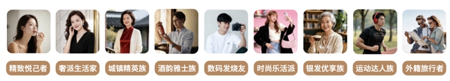 6.消費(fèi)人群重構(gòu),從“規(guī)模擴(kuò)張”到“圈層精耕”。 根據(jù)消費(fèi)貢獻(xiàn)、品類偏好、年齡、地域等維度,中免集團(tuán)核心客群可劃分為九個(gè)類別,他們精準(zhǔn)覆蓋多元消費(fèi)需求:31-45 歲一二線 “精致悅己者” 主打高端護(hù)膚,高凈值 “奢派生活家” 偏愛腕表珠寶,三四線 “城鎮(zhèn)精英” 務(wù)實(shí)追品質(zhì),31-50 歲男性 “酒韻雅士” 熱衷高端酒飲,21-35 歲 “數(shù)碼發(fā)燒友” 聚焦科技產(chǎn)品,16-30 歲 Z 世代 “時(shí)尚樂活派” 追彩妝潮流,60+“銀發(fā)優(yōu)享族” 重健康消費(fèi),26-45 歲 “運(yùn)動(dòng)達(dá)人” 選專業(yè)裝備,外籍旅行者青睞中國特色商品。各類人群消費(fèi)偏好鮮明,為消費(fèi)升級與圈層精耕注入活力。