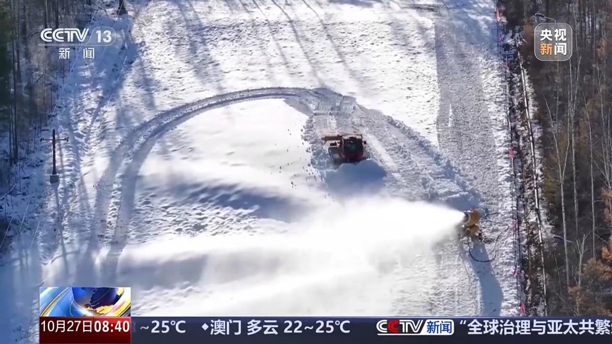 在漠河市北極村,滑雪場也已進入開滑前的沖刺階段,造雪機、壓雪車24小時不間斷作業(yè),預(yù)計下周就能開板。