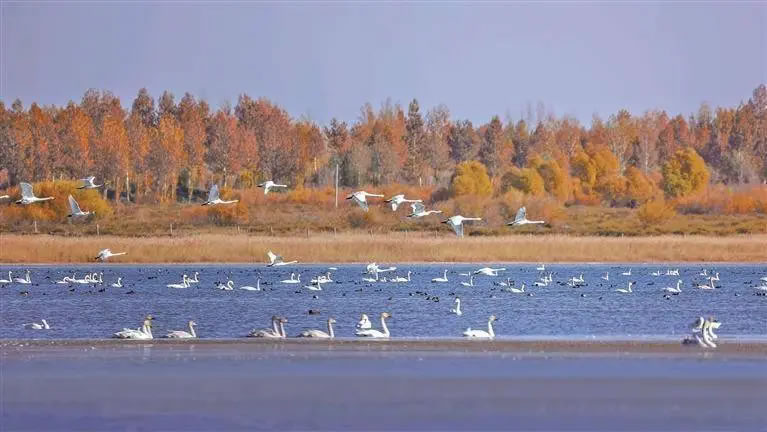 黨大朋介紹,隨著生態(tài)環(huán)境持續(xù)改善,這里已成為候鳥遷徙途中的重要補給站和棲息地。“這里目前已記錄到的鳥類超過150種,包括灰鶴、大天鵝、白鷺等國家重點保護鳥類。隨著遷徙高峰即將到來,會有更多候鳥陸續(xù)抵達。”黨大朋說。