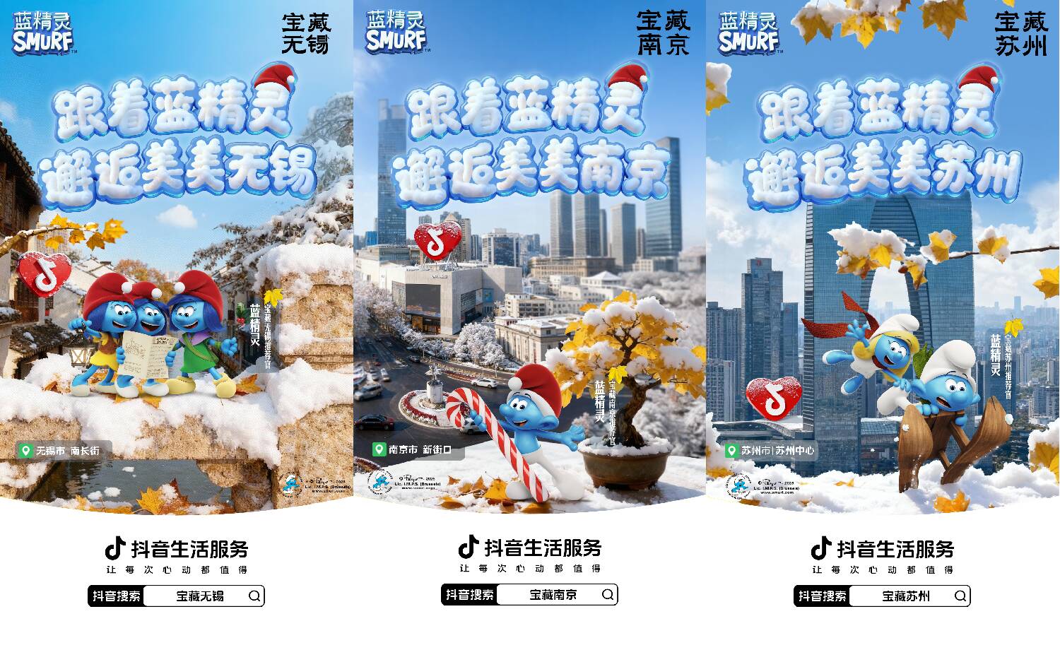 藍(lán)精靈IP的加入,則讓江南秋冬更添童趣。抖音生活服務(wù)打造藍(lán)精靈主題“美美巴士”,在南京、蘇州、無(wú)錫三城核心商圈與景區(qū)巡游,用戶打卡合影、帶話題發(fā)視頻即可領(lǐng)取限定周邊與商家優(yōu)惠券。與此同時(shí),“城市隱藏藍(lán)精靈”打卡活動(dòng)同步上線,聯(lián)動(dòng)40多個(gè)商家鋪設(shè)主題物料,用戶跟著巡游地圖打卡就能兌換禮品,有效拉動(dòng)線下交易,12月10日-19日,參與商家掃碼核銷GMV環(huán)比日均增長(zhǎng)19.5%。