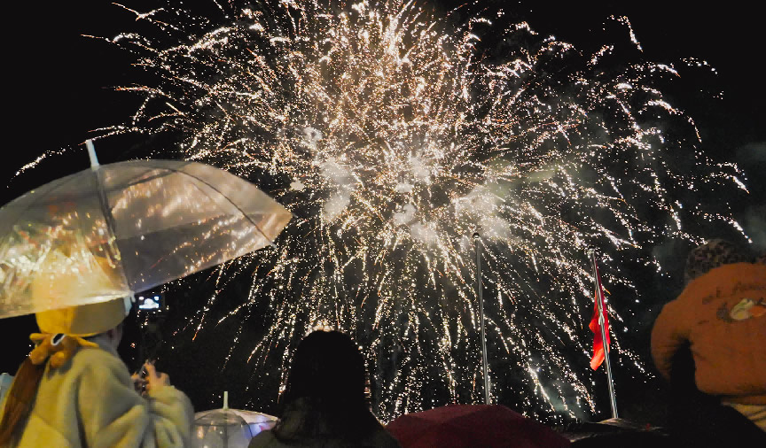 千島湖畔,除夕煙花秀吸引了眾多游客圍觀。