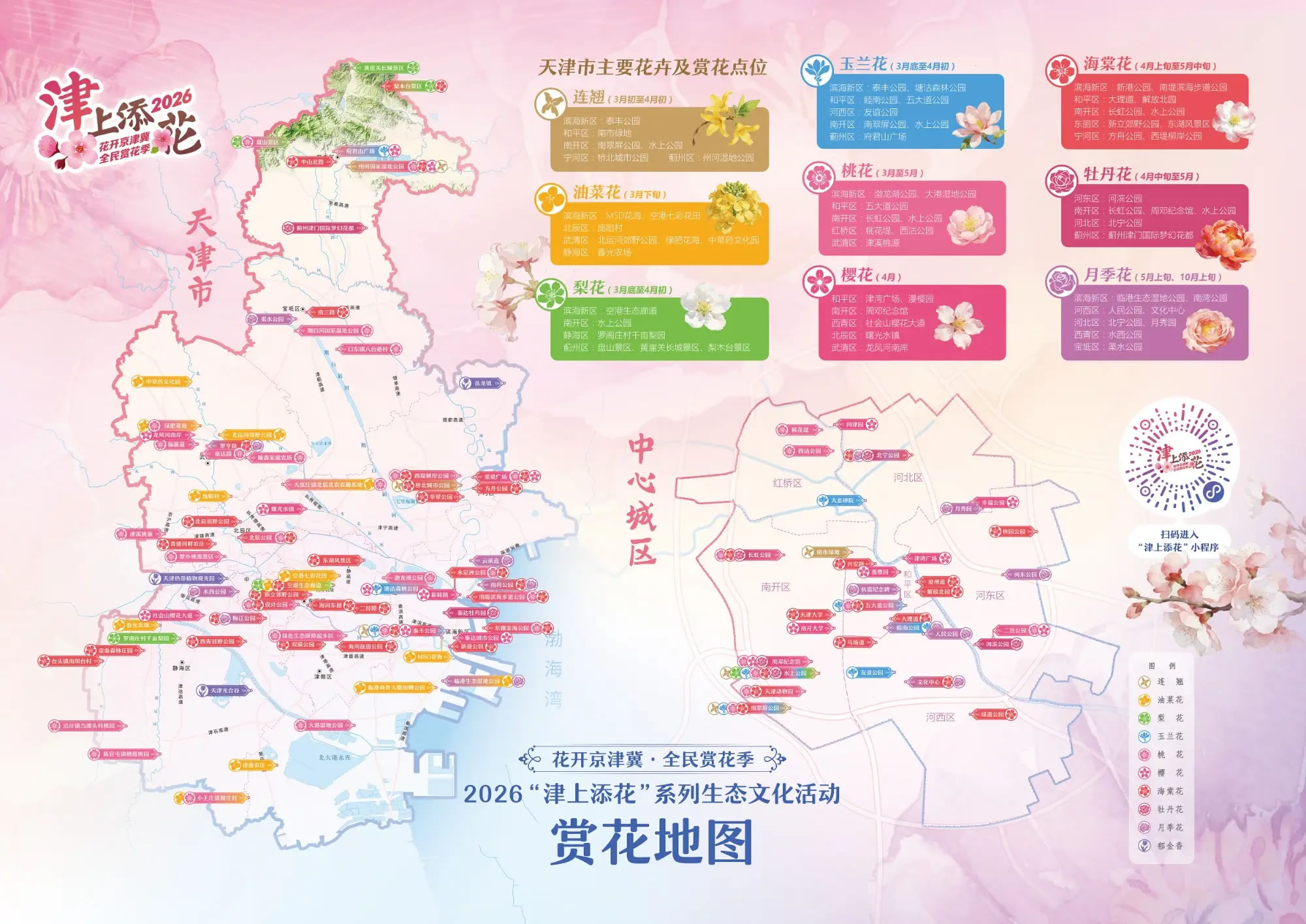 本次天津賞花活動(dòng)覆蓋全域,配套發(fā)布的賞花電子地圖成為市民出游的實(shí)用指南,地圖清晰標(biāo)注各點(diǎn)位花期、交通等關(guān)鍵信息,方便大家定制專(zhuān)屬賞花路線。相較于往年,今年賞花點(diǎn)位從100個(gè)增至129個(gè),不僅囊括傳統(tǒng)賞花勝景,還融入綠屏、古樹(shù)、非遺、觀鳥(niǎo)等元素,實(shí)現(xiàn)“四季有花、全域皆景”,白天賞繁花、夜晚看夜景的全時(shí)段觀賞體驗(yàn)讓春日游玩更豐富。