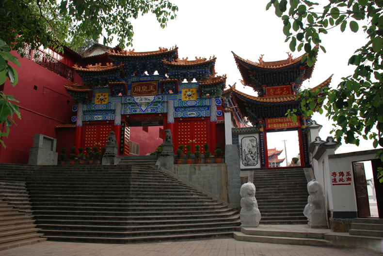 保山玉皇閣,位于保山市城西太保山上,是保山境內(nèi)規(guī)模最大,保存最好的道教建筑群之一。始于嘉靖二十八年(1549年),三十八年(1559年)落成開放。占地面積3399.2平方米,依地形而建,坐西向東,橫向布局為三個院落,分別為山門、三官殿、灶君樓。主體建筑玉皇閣居于整個建筑群的中央,由大殿及鐘、鼓二亭組成一個“品”字形院落。整個建筑氣勢雄偉,結(jié)構(gòu)精湛,裝飾華美,充分體現(xiàn)了封建社會帝王為尊、皇權(quán)至上的構(gòu)思主題,具有極高的史學(xué)研究和藝術(shù)鑒賞價(jià)值。