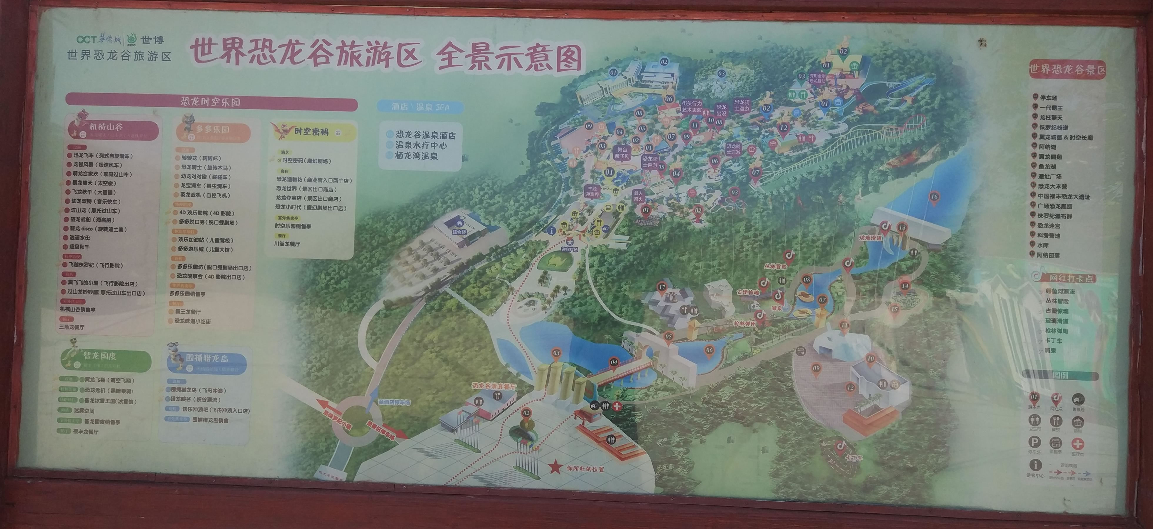 由“侏羅紀(jì)大瀑布”、“群龍對(duì)峙”、“腕龍相親”、“氣龍追逐”、“雙龍飲瀑”、“霸王龍窺獵”、“侏羅紀(jì)叢林”、“海棗之王”、“沙漠之林”等九大景觀真實(shí)再現(xiàn)了侏羅紀(jì)時(shí)代恐龍王國的生活場(chǎng)景,構(gòu)造出一個(gè)1億年前生氣勃勃、繁榮昌盛的侏羅紀(jì)世界,讓游客飽享一頓視覺大餐。