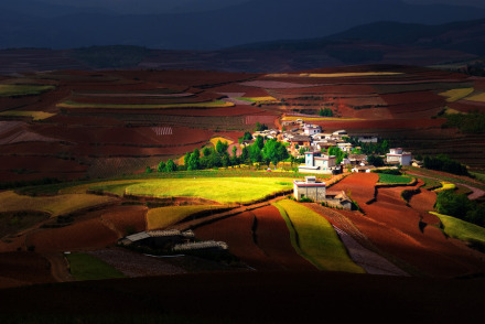東川紅土地被專家認(rèn)為是全世界除巴西里約熱內(nèi)盧外最有氣勢的紅土地,而其景象比巴西紅土地更為壯美。東川紅土地指的是位于昆明市東川區(qū)西南40多千米的新田鄉(xiāng)、有一名叫“花石頭”(在109千米程碑處)的地方,這里方圓近百里的區(qū)域是云南紅土高原上最集中、最典型、最具特色的紅土地。